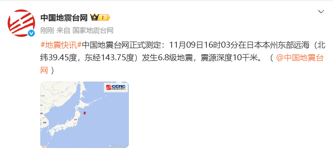 中国地震台网正式测定:11月09日16时03分在日本本州东部远海(北纬39.45度实盘配资最狠的三个平台,东经143.75度)发生6.8级地震,震源深度10千米。